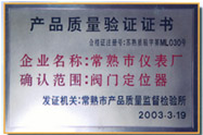 常熟市技術監督局頒發的《計量合格確認單位證書》