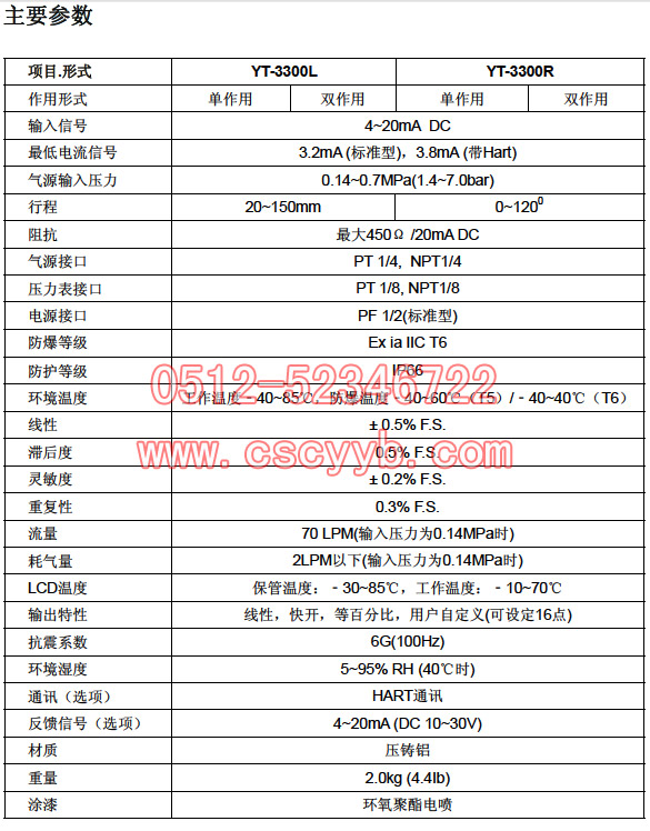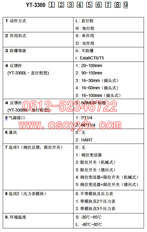 YT-3300智能閥門定位器選型表