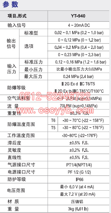 電氣轉換器YT-940系列產品是從控制室接收4~20mA電流按比例轉換成氣壓信號的裝置。