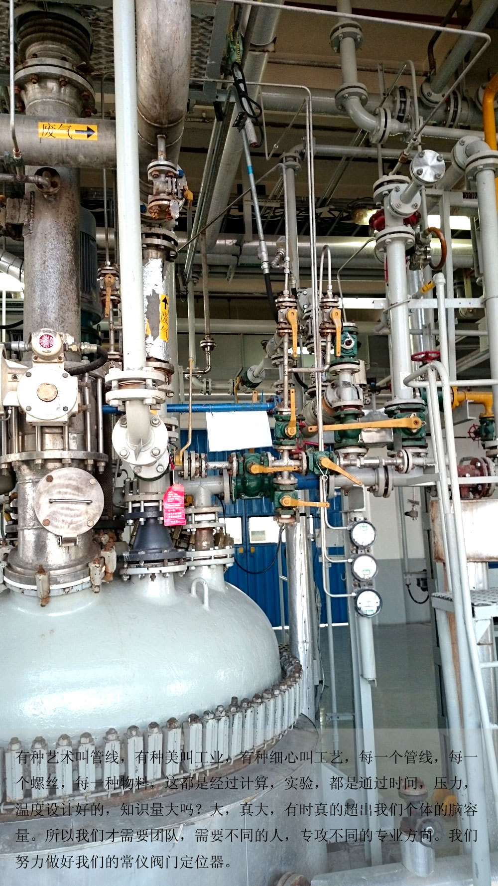 有密集恐懼癥的看到這些就悲劇了,其實(shí)這只是化工行業(yè)很小的一個(gè)反應(yīng)釜,還有很多更復(fù)雜的,工藝條件更嚴(yán)苛的。之前我們金工去過(guò)一個(gè)核電站,在反應(yīng)堆內(nèi)部。從廠區(qū)大門(mén)要經(jīng)過(guò)三道安全門(mén),而且不能帶任何物品,衣服要全部換防輻射服,脫到只穿內(nèi)褲的那種。出來(lái)后還要進(jìn)行,輻射檢測(cè),不達(dá)標(biāo),你別想走。這些都是我們的經(jīng)驗(yàn),也告誡我們要生產(chǎn)絕對(duì)可靠的閥門(mén)定位器,因?yàn)槲覀儾恢牢覀兊漠a(chǎn)品會(huì)應(yīng)用在什么地方,也許它關(guān)系到千百人的人身安全。