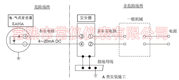與安全柵的組合 如果要在電氣定位器EA90A上組裝并使用安全柵,所使用的安全柵本身必須是通過基于技術標準的型式鑒定(機械鑒定)的產品。 電氣定位器EA90A的安全保持標準值和參數如下所示。請選用能夠滿足系統構成的組合條件的安全柵。 1、 全保持標準值 本安電路容許電壓:30V 本安電路容許電流:10mA 本安電路容許功率:0.75萬 2、 器分類及分組 分類:ia 分組:II C 3、 參數 內部電感:可忽略不計 內部電容:可忽略不計 請不要把固定電壓電源連接到本安防爆結構的電氣定位器EA90A上,如果過大的電流流經定位器內部的話,可能會損壞二極管。 |