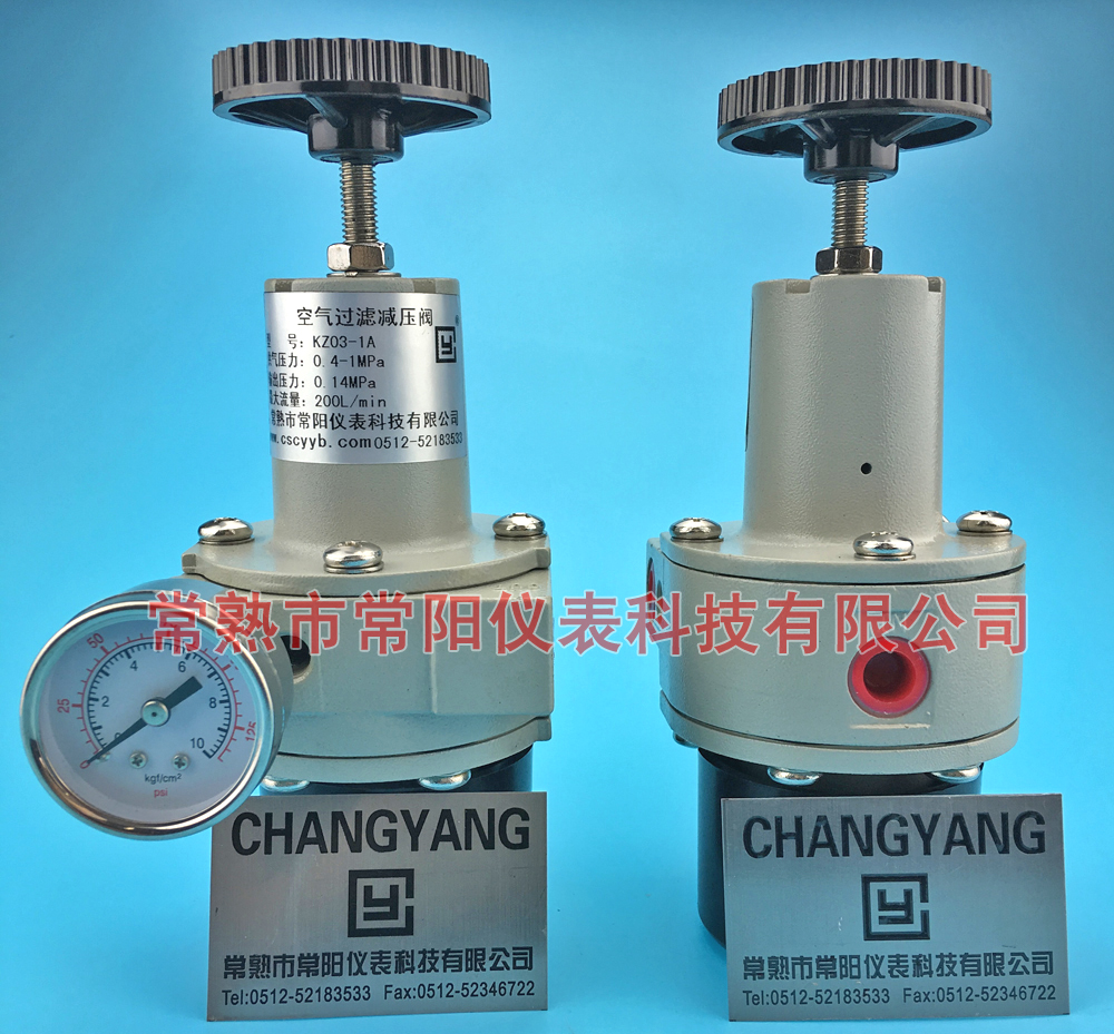 (圖為常陽生產的KZ03系列空氣過濾減壓閥,將來自空氣壓縮機等設備的壓縮空氣,經過濾凈化后, 減壓調節、穩定輸出所需的壓力。作為各類氣動儀表和氣動自動裝置的氣源壓力提供給單元以及氣動設備的附屬裝置,適用于儀表供給壓力和動力風壓的穩定裝置。) 一、減壓閥選用原則: 1.減壓閥進口壓力的波動應控制在進口壓力給定值的80%~105%,如超過該范圍,減壓閥的性能會受影響。 2.通常減壓閥的閥后壓力Pc 應小于閥前壓力的0.5 倍,即Pc<0.5P1。 減壓閥的每一檔彈簧只在一定的出口壓力范圍內適用,超出范圍應更換彈簧。 3.在介質工作溫度比較高的場合,一般選用先導式活塞式減壓閥或先導式波紋管減壓閥。 4.介質為空氣或水(液體)的場合,一般宜選用直接作用薄膜式減壓閥或先導式薄膜式減壓閥。 5.介質為蒸汽的場合,宜選用先導活塞式減壓閥或先導波紋管減壓閥。 6.為了操作、調整和維修的方便,減壓閥一般應安裝在水平管道上。