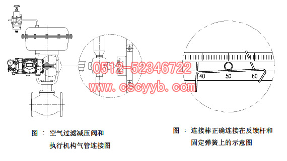 利用支架安裝YT-3400L 1.制作可以正確連接在執行機構支架上的定位器的支架。 制作支架時要考慮的核心事項如下: YT-3400L反饋桿在閥門行程達到50%時要水平。 在執行機構和閥桿連接件上的反饋桿連接棒必須要連接在反饋桿上和閥門行程一致的刻度位置。 考慮上述2項說明制作支架,可方便安裝YT-3400L。 2.利用螺栓組裝支架和YT-3400L。組裝時按如下圖所示,用螺栓把YT-3400L固定到支架上。螺栓的規格是M8 X 1.25P,其它標準螺栓也可選用。  3.支架和YT-3400L組裝固定后,連接到執行機構的支架上,但不要完全擰緊螺母,請保留一定的空隙。 4.在連接閥門軸和執行機構推桿的連接件上安裝連接YT-3400L反饋桿的連接棒。YT-3400L反饋桿上的一字槽的高度是6.5mm,因此連接棒的直徑要小于6.3mm。  5.在執行機構上臨時安裝空氣過濾減壓閥,適當調解空氣過濾減壓閥的壓力,使行程指示器達到閥門行程的50%位置。  6.把安裝在閥桿連接件上的連接棒插入到反饋桿一字槽內。這時要把連接棒如上右圖正確插入到反饋桿上的固定彈簧上,才能減小滯后度。 7.請確認當閥門行程在50%時YT-3400L的反饋桿是否成水平。如果不保持水平,請調整支架和反饋桿連接件,使反饋桿成水平。安裝YT-3400L后如果反饋桿不成水平會對產品的線性有影響。  8.確認閥門行程。YT-3400L的反饋桿上刻有對應閥門行程的數字。如下圖把連接在閥桿連接件上的連接棒插入到反饋桿上與閥門行程相同的刻度位置上。為了使其一致,左右調節YT-3400L的支架的位置和連接棒的位置,調準后進行固定。  注意事項 安裝后利用空氣過濾減壓閥調節閥門。確認閥門行程達到0%和100%時,反饋桿有沒有碰到YT-3400L后面的限位擋板。如果碰到,那么把YT-3400L遠離執行機構推桿,使反饋桿碰不到限位擋板。  9.按上述步驟正確安裝YT-3400L后,擰緊支架和反饋桿連接棒上的螺母,使其固定。