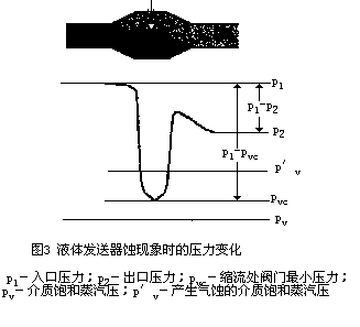 2)腐蝕性液體在控制閥內部發生氣蝕、閃蒸的情況,這種工況對閥門及內件造成的損害會非常大,液體氣蝕過程中氣泡破裂對閥內件接觸面的損害要遠遠超過上述顆粒的損害性,因為氣蝕會“吃掉”內件,同時腐蝕內件。對于氣蝕現象,在下面會詳細介紹。