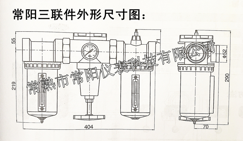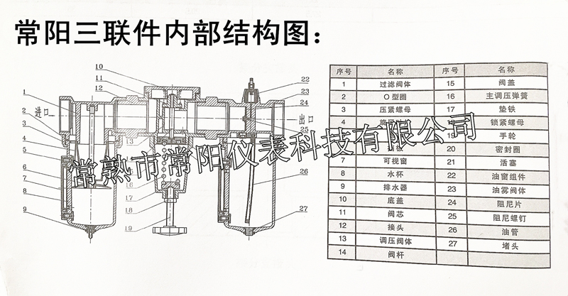 常陽三聯件產品特點: 1、滴油結構采用間隙密封形式,給油調節更穩定可靠; 2、給油調節成線性分布,給油量大小直觀;