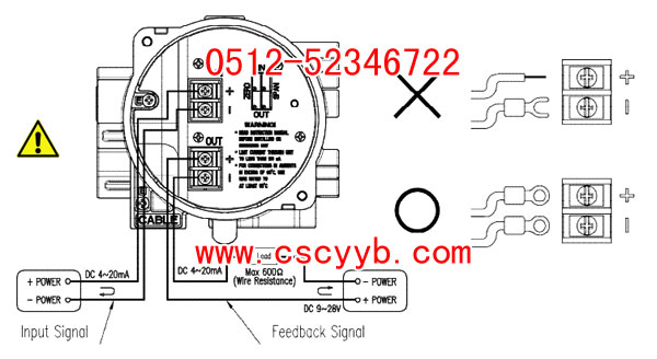1. 反饋信號需要DC 9 〜28V 。供應4mA電流。請檢查輸出壓力為零點和正確地接收反饋信號。如果沒有,用小的( - )螺絲刀調整零點調整螺栓,直到接收反饋信號被設置為4mA.