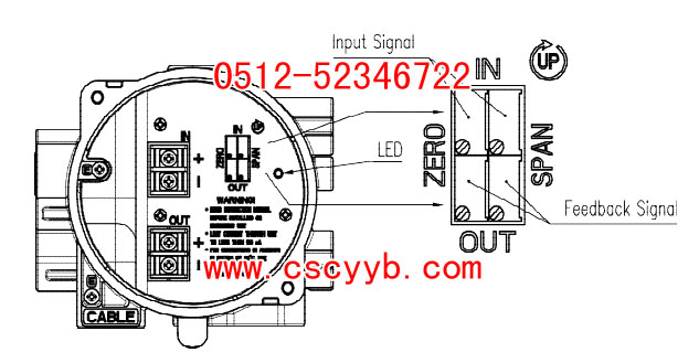 1. 接線已完成后,請提供4mA作為輸入信號. 請檢查輸出壓力,通過使用小( - )螺絲刀調整零點調整螺栓。在一般情況下,零應在0.02MPa.